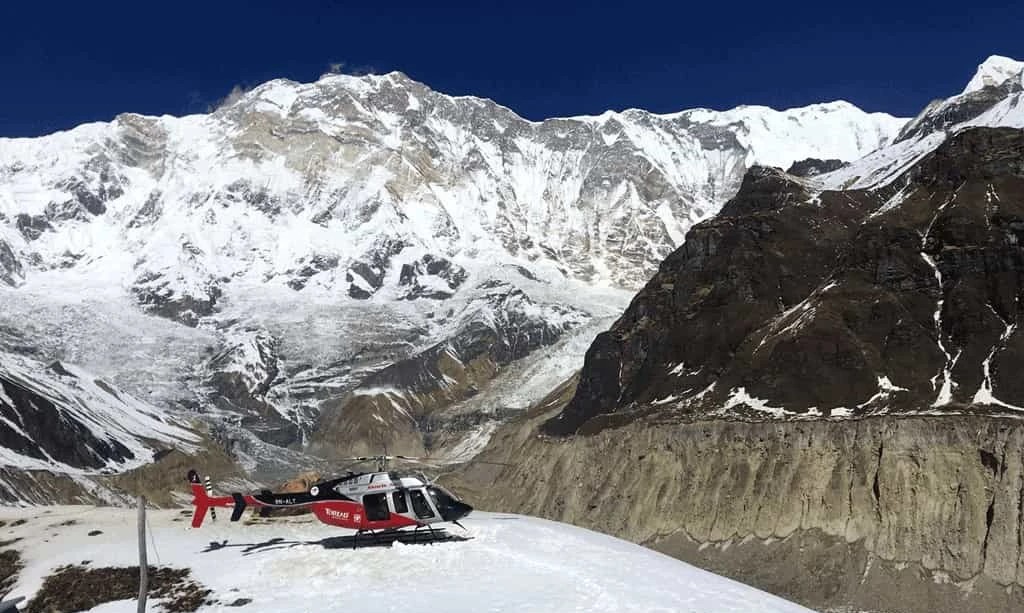 - Landing at Annapurna Base Camp, allowing for close-up views of the towering peaks